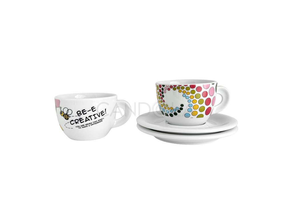 Bee Happy šálek na cappuccino Edex s podšálkem Edex 190 ml - sada 2 ks