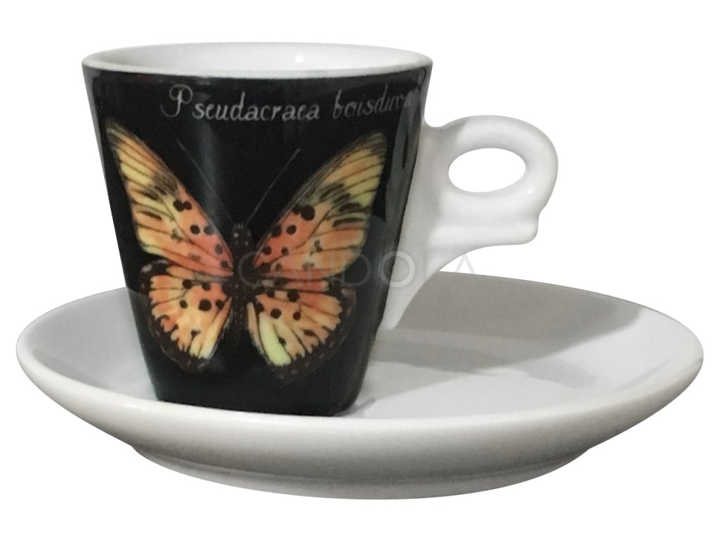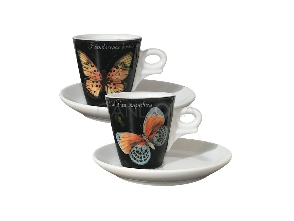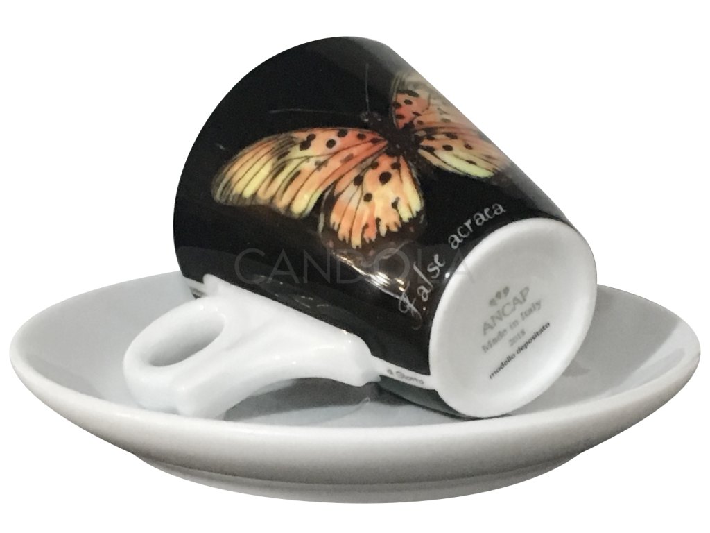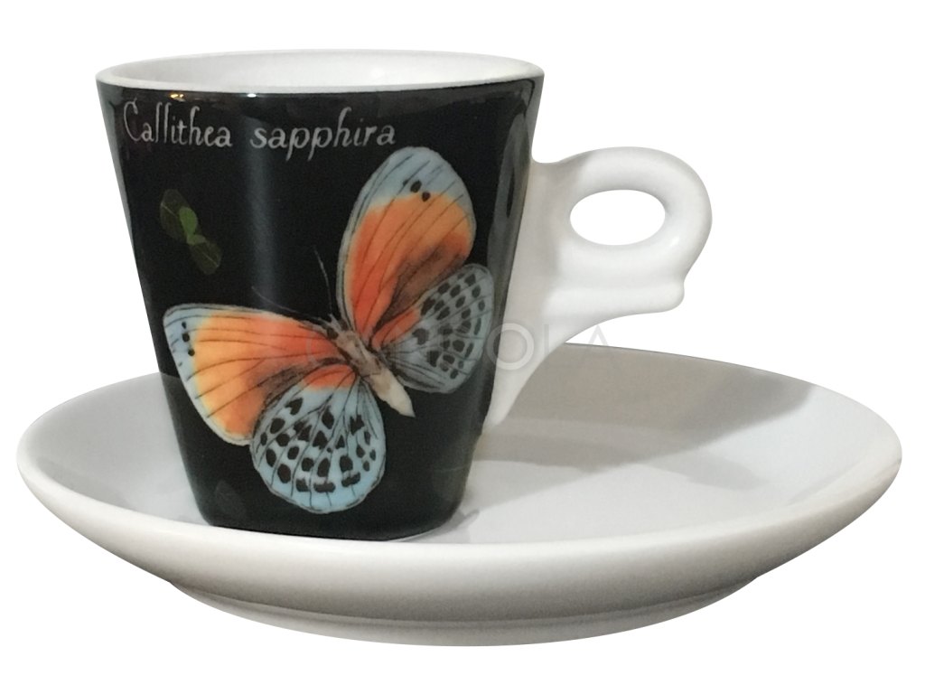 Decorated porcelain cup with saucer from collection of coffee porcelain Ancap Magie brings the real magic of butterfly wings. Thick walled porcelain keeps heat perfectly and the drink will stay at the right temperature for a long time. The round bottom of the cup is important to obtain and maintain perfect foam.
