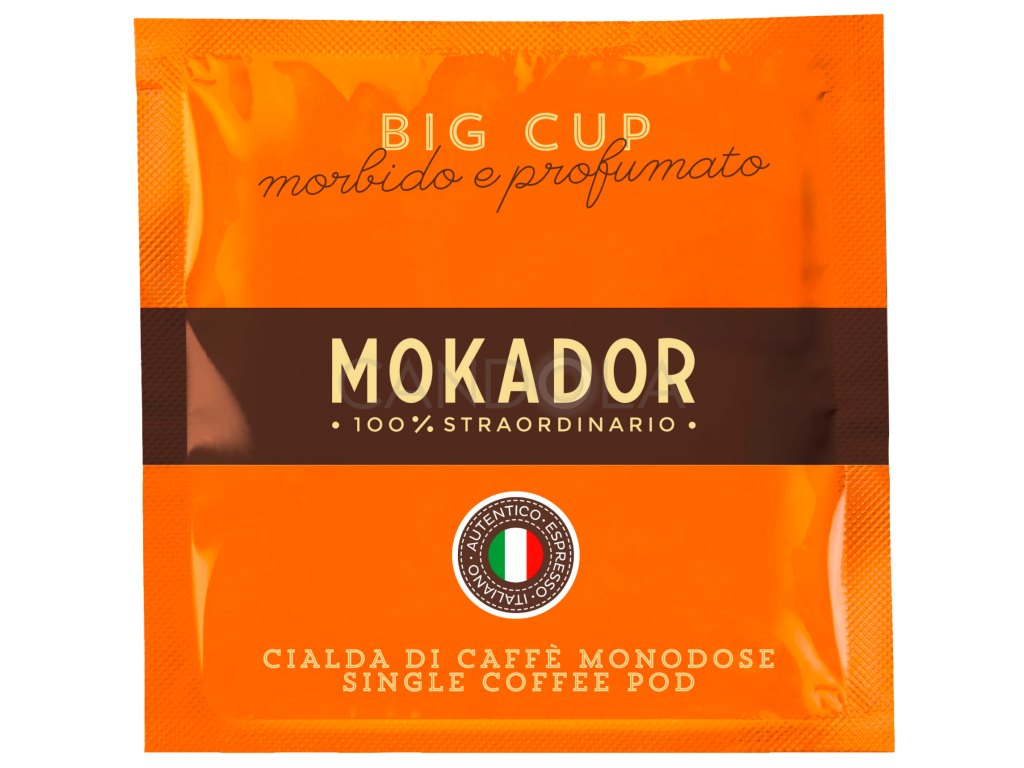 Big Cup Italian XL Coffee - pod pákového kávovaru se speciálně mletou kávou pro přípravu velkého šálku. Směs Arabiky a Robusty s jemnou aromatickou chutí ideální pro ty, kteří mají rádi více kávy než v klasickém espressu. V šálku se vyznačuje pravidelnou texturou.