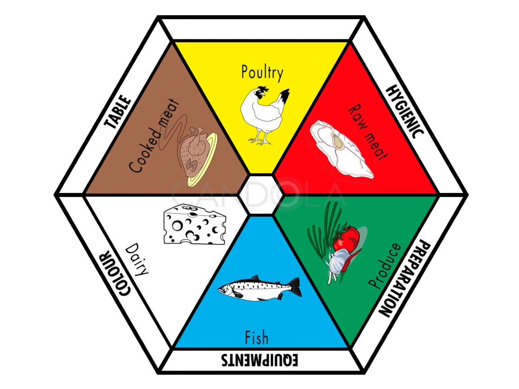 Co je HACCP zná každý kuchař. Barevné rozlišení kuchyňského náčiní předchází riziku vzniku nákaz. Nůž na maso s červenou rukojetí, nůž na ryby s modrou, nůž na zeleninu se zelenou, nůž pro drůbež se žlutou, na vařené maso má být rukojeť hnědá a nůž barevný s bílou rukojetí na cukrářské produkty.