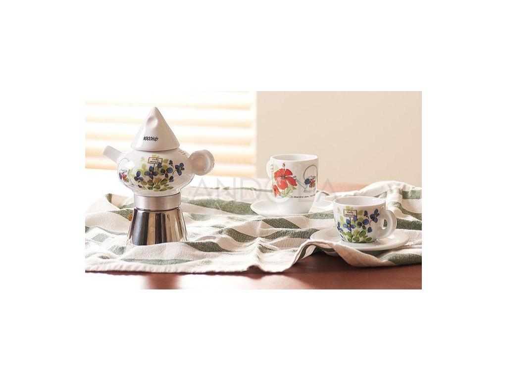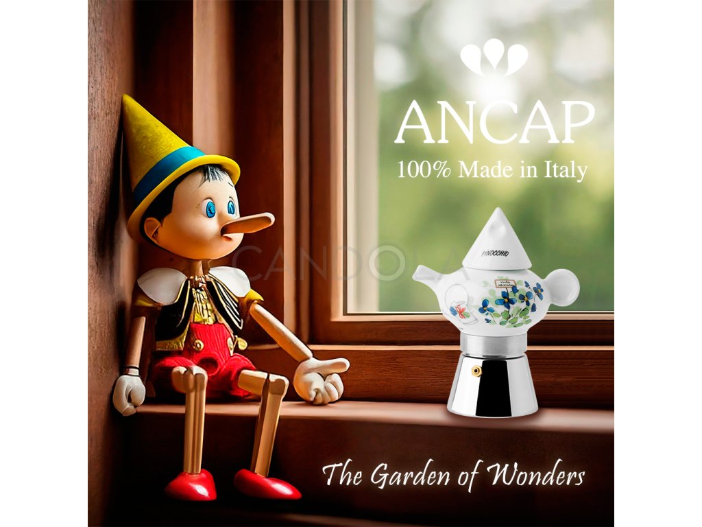 Dekorovaná hrubostenná porcelánová espressina na prípravu talianskeho espressa, s jemným kvetinovým motívom talianskej Záhrady zázrakov, vhodná na použitie na väčšine známych varičov, vrátane klasického sporáka na pevné palivo, plyn, elektrinu. Nie je určená na indukciu. Chuť kávy uvarenej v porcelánovej espressine Ancap nie je negatívne ovplyvnená vylúhovaním pachute hliníka či kovov ako je to pri iných kovových moka kanvičiek bialetek.