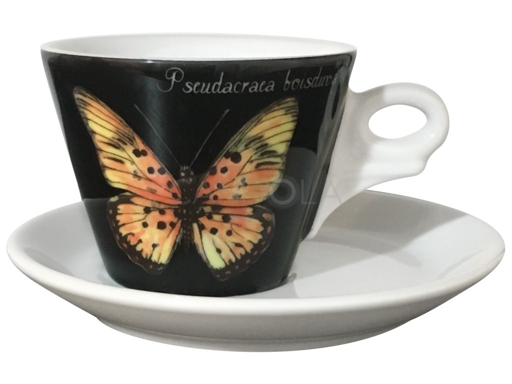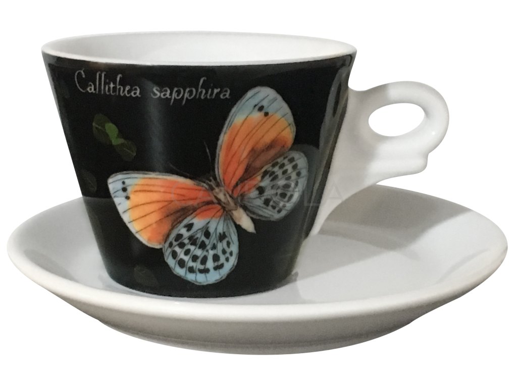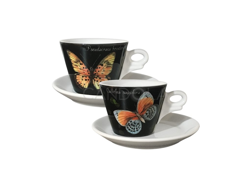 Dekorovaná porcelánová šálka na kapučíno s podšálkou z kolekcie hrubostenného porcelánu na kávu Ancap Mágia prináša skutočnú mágiu motýlích krídiel. Dno šálky je v optimálnom tvare na profesionálne použitie. Dostatočne otvorený ústny okraj poskytuje dostatok priestoru na latte art. Šálka je na podšálke umiestnená mimo stredu a tak vzniknutý priestor je ideálny pre servírovanie sušienky, cukru či lyžičky na kávu. Hrubostenný živcový porcelán skvele drží teplo a nápoj tak bude mať dlho správnu teplotu.